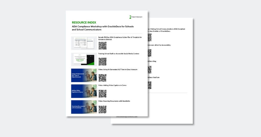 Making school communications digitally accessible can feel like a steep climb, but it’s so important. Our ADA Compliance Workshop with GrackleDocs helped school teams understand the requirements, take meaningful action, and build districtwide momentum. This index brings together all resources from the session so you can explore the material, share it with your team, and take your next steps toward ADA compliance with confidence.